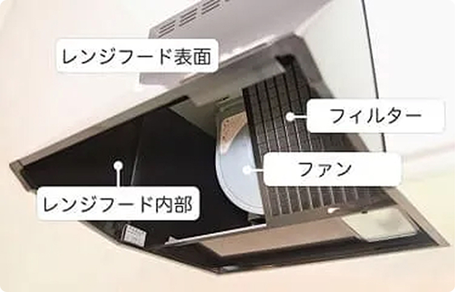 ・レンジフード表面・フィルター・ファン(分解できるパーツ)・レンジフード内部