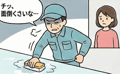 事例③:「作業後も汚れや臭いが落ちていなかった」ケース