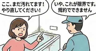 浴室クリーニングでは、作業後に仕上がりを見て初めて判明する不具合もあります。