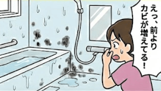 | 「失敗&後悔」の内容 | Eさんは黒カビをすっかり落とせましたが、換気を忘れて放置してしまいました。数日経って、カビが別の場所にも広がってしまっているのに気が付きました。 |
