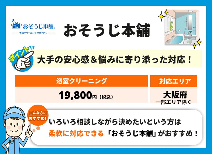 | 5. おそうじ本舗|大手の安心感&柔軟対応で「相談しやすい」! | ||