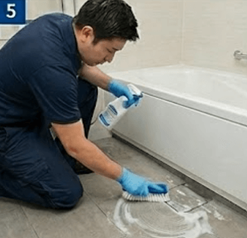 床・排水口・ドア周りの徹底洗浄(20〜30分)