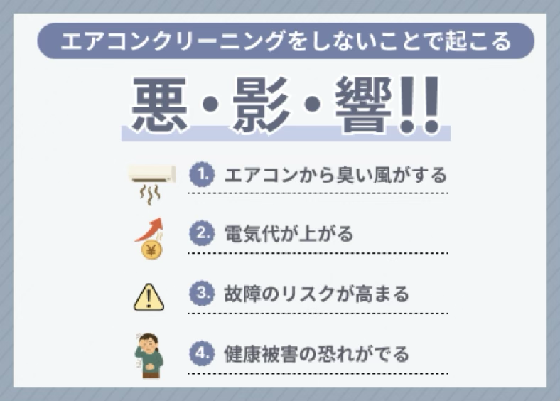 エアコンクリーニングをしないとどうなるかについて、より詳細に知りたい方は以下の記事もご覧ください。