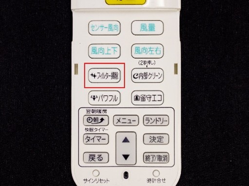 リモコンに「フィルター掃除」や「手動掃除」などのボタンがあるかチェックします。