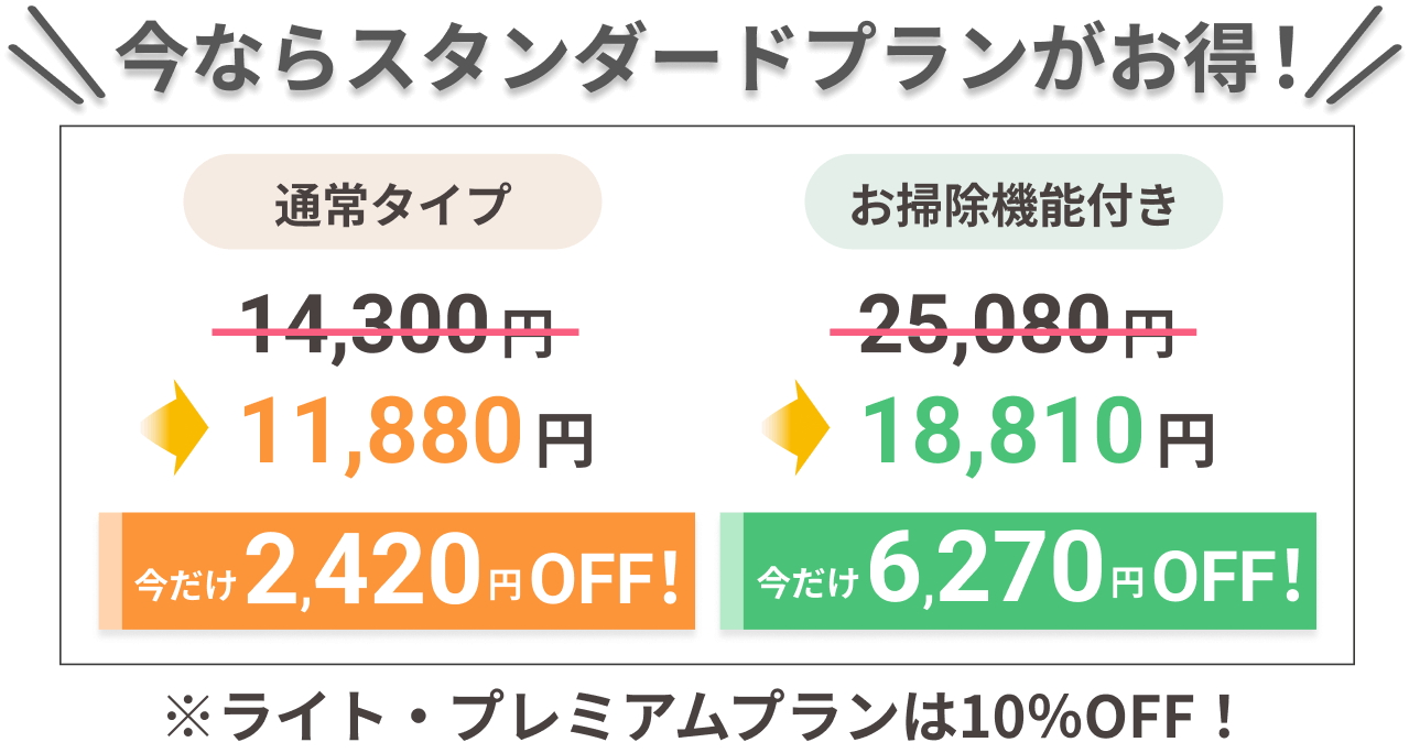 以下の項目に1つでも当てはまる場合、「お掃除機能付」を選択してください。