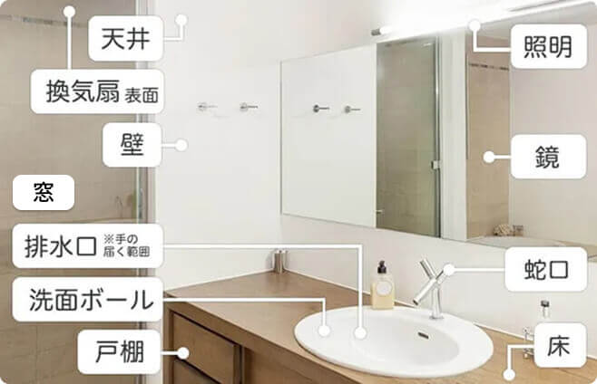 • ・浴槽エプロン内部、窓、備品のお掃除はオプションサービスとして追加可能です。