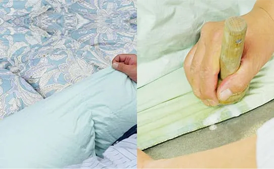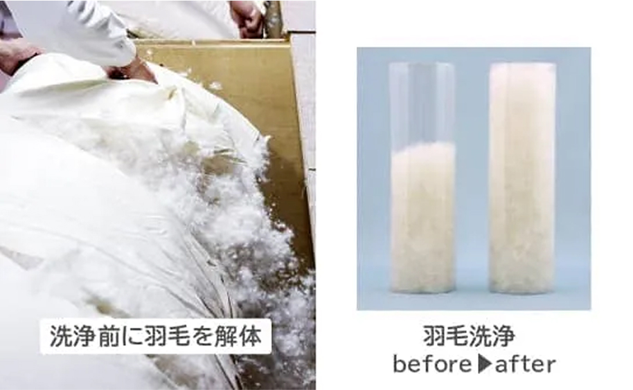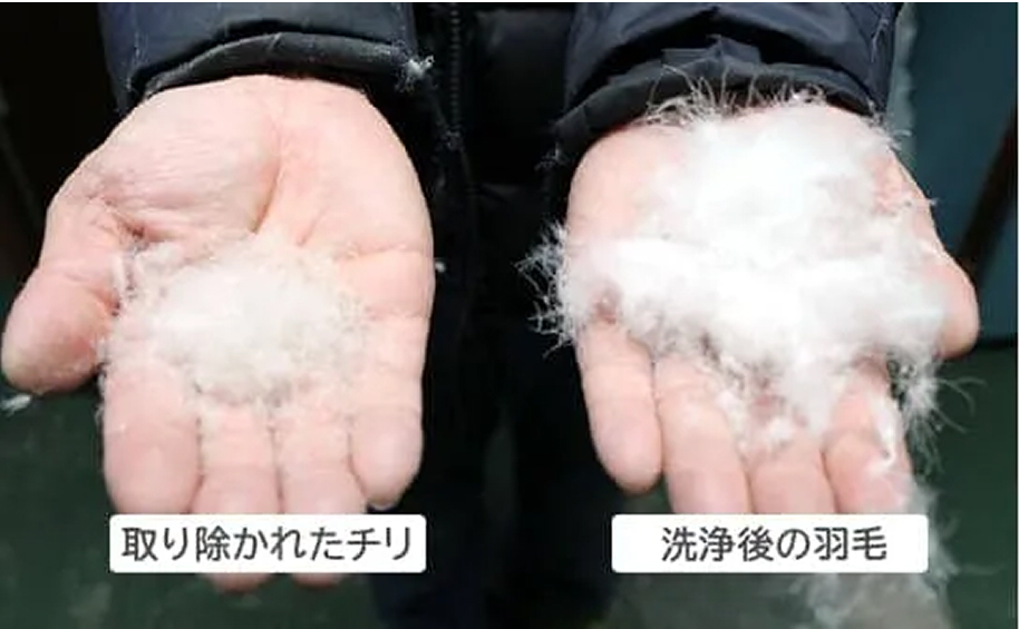 洗浄後、古くなった羽毛やチリを取り除いた後は、
