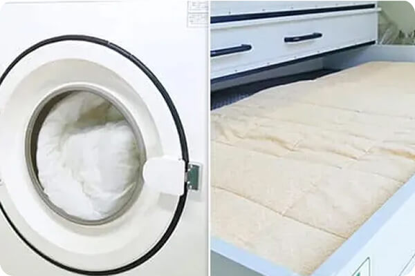 布団の種類、汚れにあった洗濯方法でクリーニング。専門工場ならではの機器・洗剤を用いることで、落ちにくい汚れもしっかり落とします。