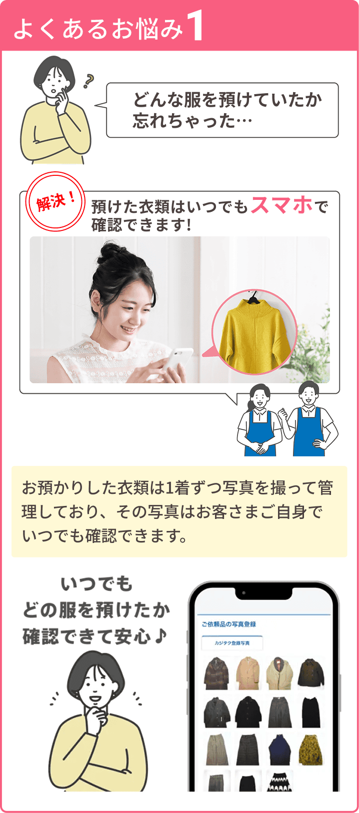 預けた服をの写真を登録してくれるから、何を預けたか忘れないのも良いです。